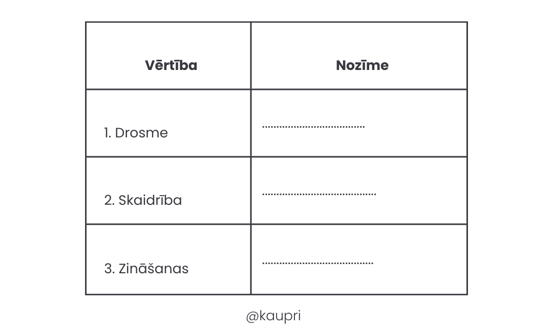 Izvēlies 3 pašas svarīgākās no 10 izvēlētajām vērtībām un vajadzībām.